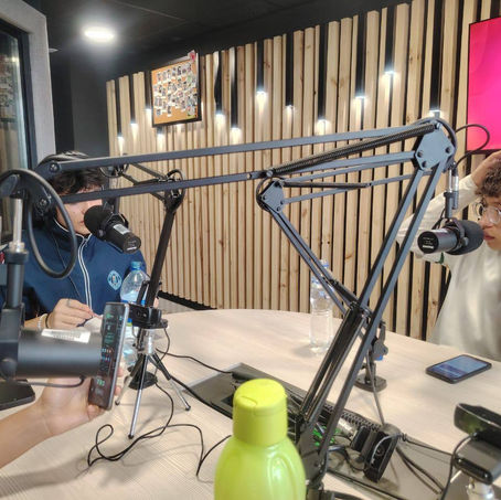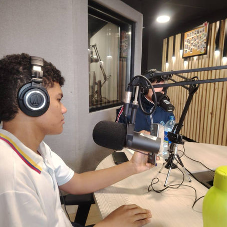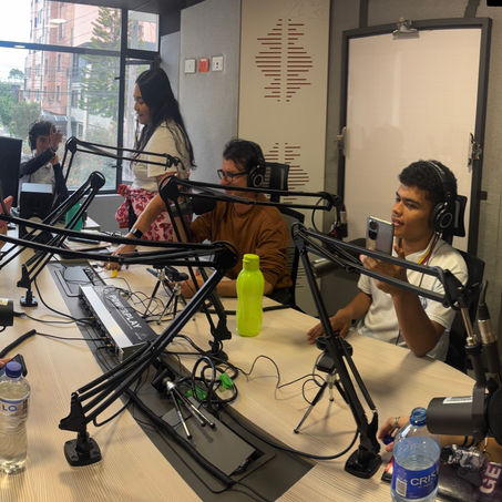 Con el grupo de estudiantes del proyecto podcast visitamos las instalaciones de la Casa Ciudad Maestra, donde tuvimos la oportunidad de grabar dos episodios del podcast en la cabina de radio de EMISED (emisora de la Secretaría de Educación Distrital) con los equipos profesionales con los que no contamos en el colegio.